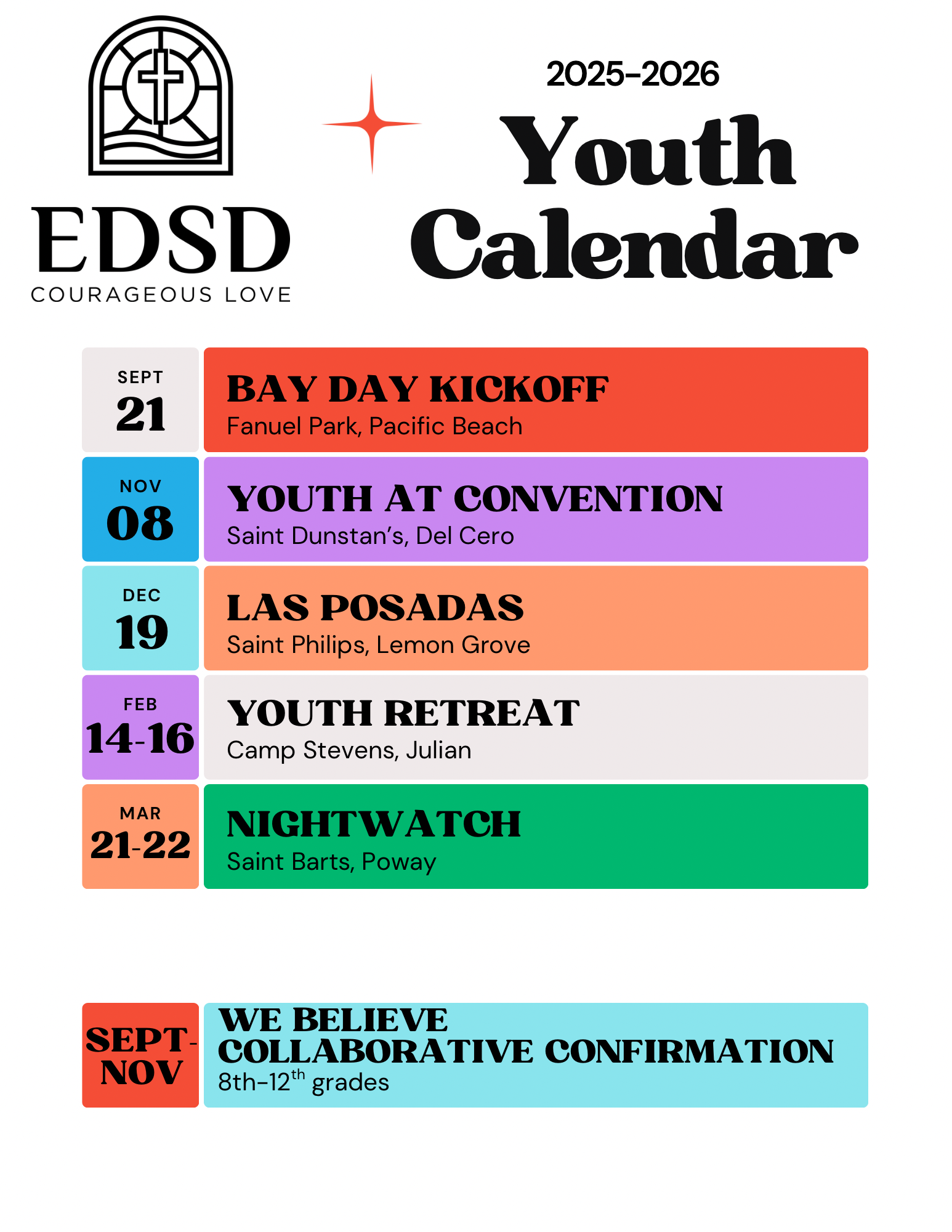 The ’24-25 Program year is complete. Below are the calendars for children and youth events for the ’25-’26 program year. Registration details will be available before June 15, 2025.