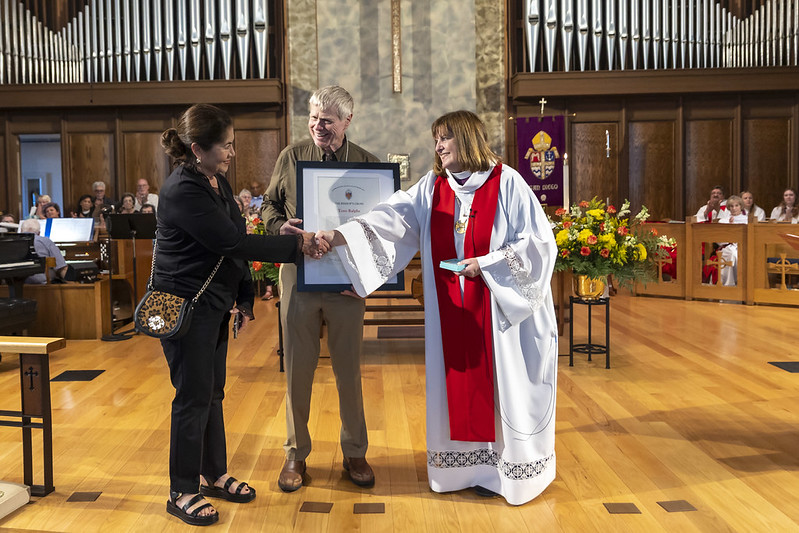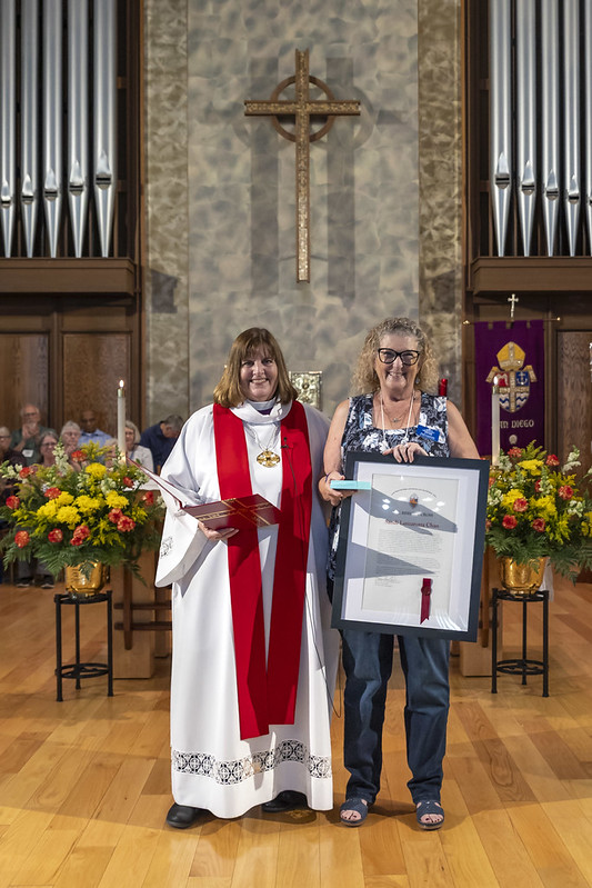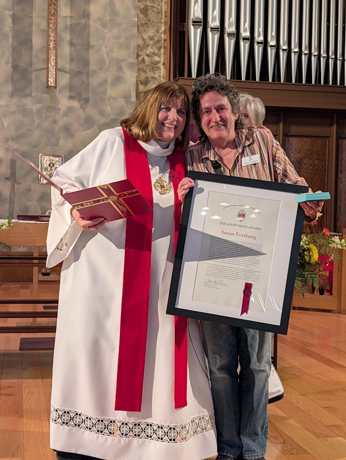 Susan’s photographic art extends beyond the church, including beautiful photographs of nature, animals, and other scenes that are accepted into juried photographic exhibits. This talented photographer fits her ministry in with the rest of her busy life as a professor of microbiology at USC. A true renaissance woman, she devotes a good part of her time and effort to the work of the church, and we are indebted to her for helping us tell the story of the Episcopal Church here in San Diego. I am delighted to present Susan Forsburg with the Good News Award.